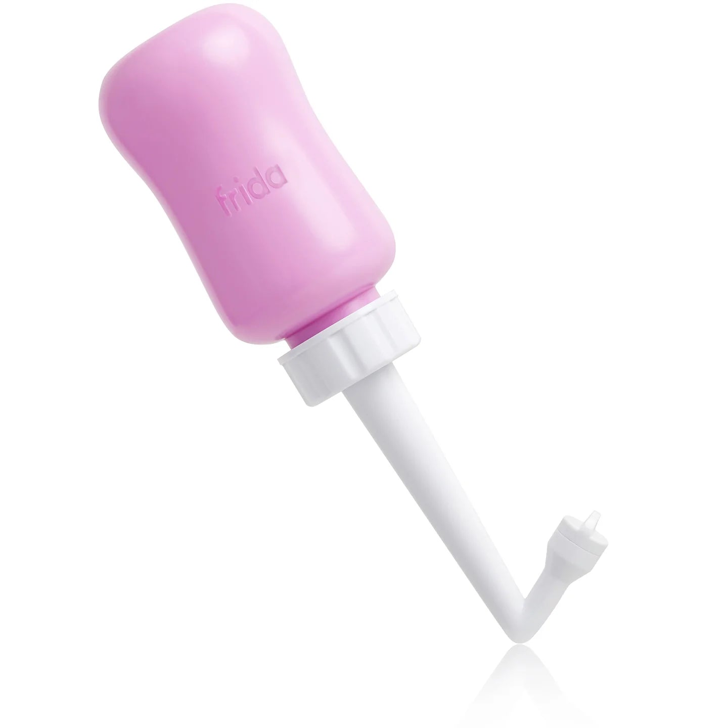 Specifically designed to be held upside down avoiding the dreaded hand-in-toilet situation - with a narrow angled neck for a continuous stream of relief right where mom needs it.